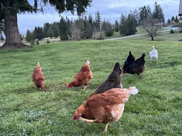 She'd watch movies on the couch with the girls as a chick. She'd stand at the back door as a hen, looking through the glass, patient and unbothered, waiting to be let back in. The girls assumed the "B" was just an initial — over time, they landed on "Miss Boss" as the explanation. It suited her perfectly. We've never felt the need to elaborate.